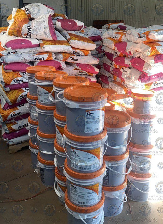 En el lugar se aseguró mercancía que se presume robada, entre lo que destaca insumos industriales y productos comerciales, así como más de mil costales de materia prima de panificación, cajas y contenedores rellenos frutales, productos de confitería, dulces y alimentos procesados para mascotas.