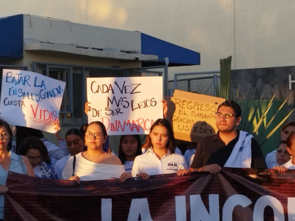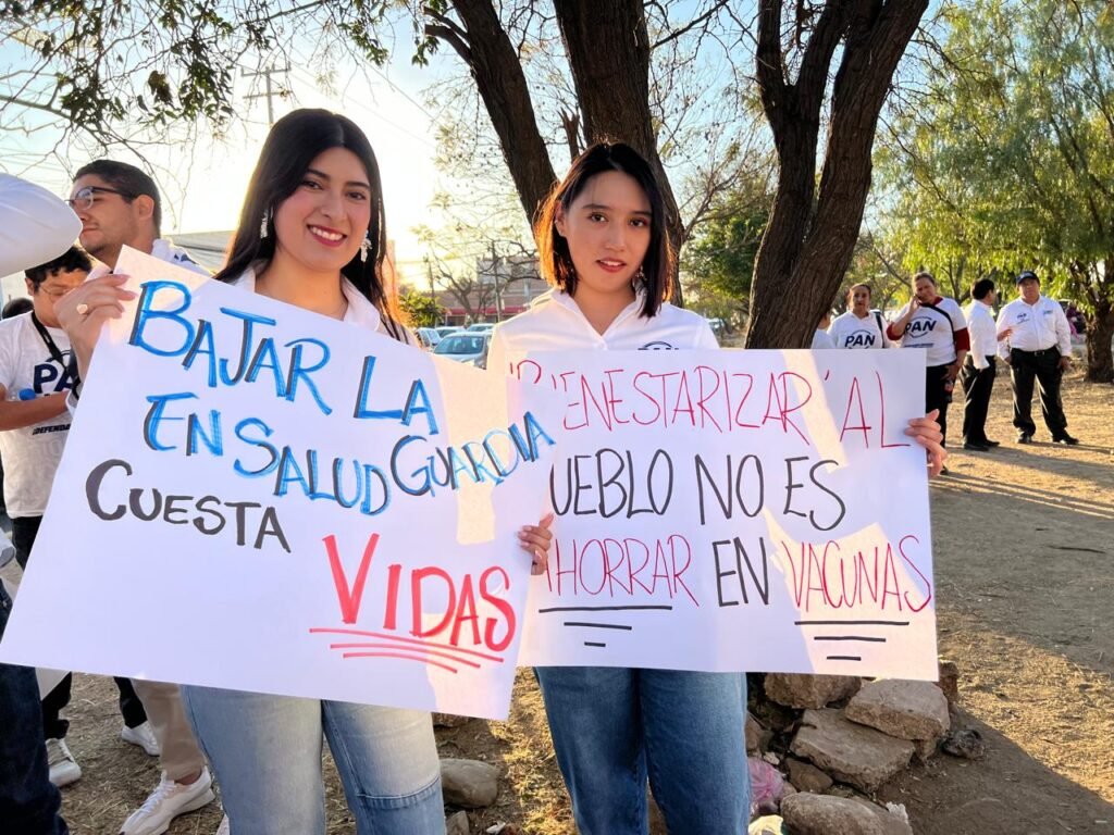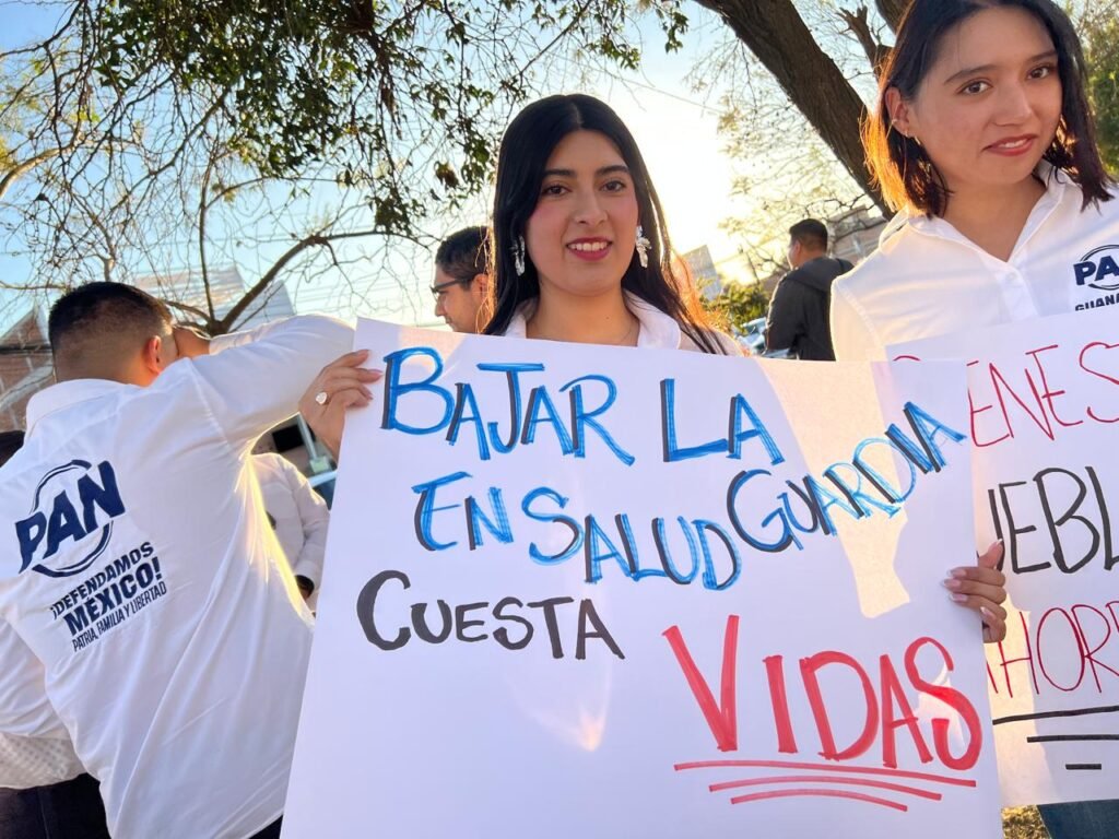 ¡En Guanajuato el PAN defiende tu salud! Gritaron panistas en su reclamo.