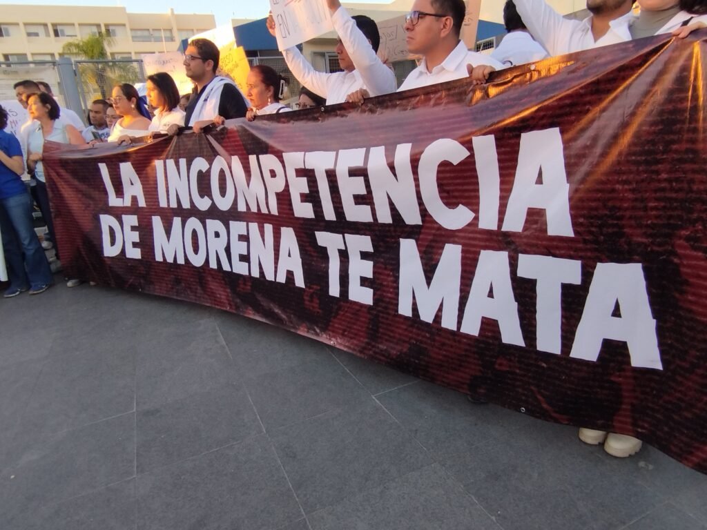 ¡La incompetencia de Morena Te mata! y ¡Morena incompetente el Sarampión regresa! Fueron consignas plasmadas en lonas con las que los panistas en Guanajuato caminaron rumbo al Hospital Regional de Alta Especialidad del Bajío para manifestarse.