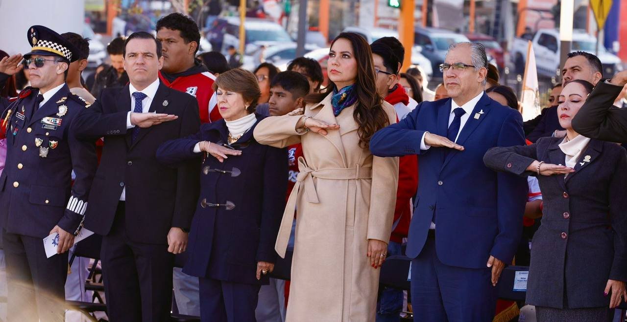 Asimismo, se destacó el significado de la Bandera del Estado, cuyo escudo representa valores como la fe, la fortaleza y la identidad de una tierra que no se rinde y que mira al futuro con esperanza.