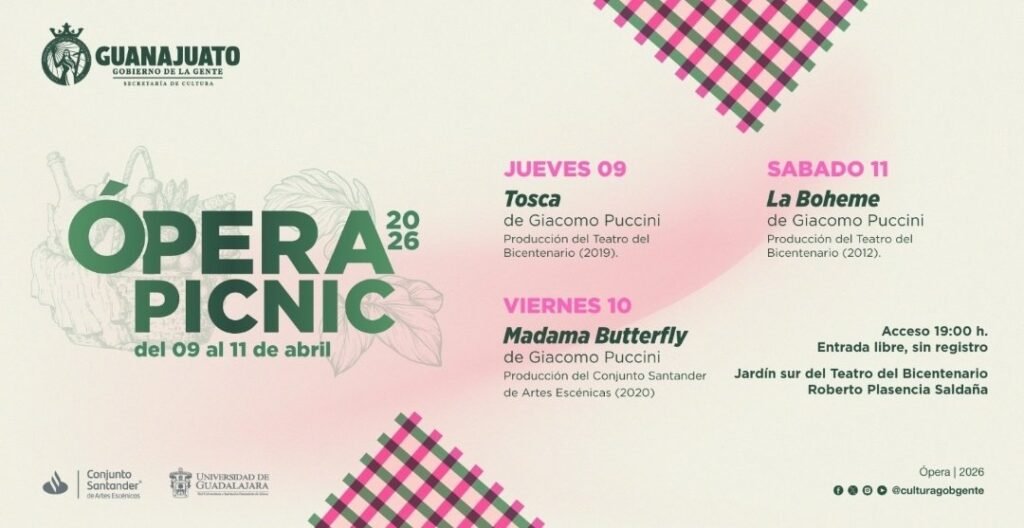 La ciudad de León se llena de música y convivencia cultural con el inicio de la temporada de Ópera Picnic, que se lleva a cabo en los jardines del Teatro Bicentenario Roberto Plasencia Saldaña. Este evento, organizado por la Secretaría de Cultura del estado de Guanajuato, se realiza del 9 al 11 de abril y ofrece entrada gratuita para todo el público.
