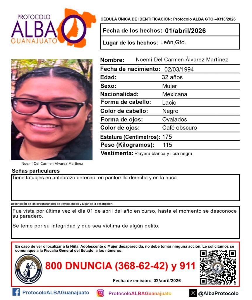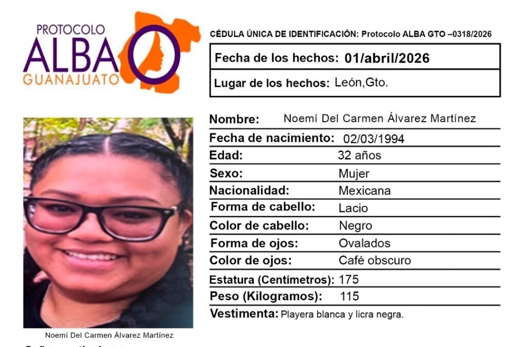Se cumplió ya una semana de la desaparición de Noemí del Carmen Álvarez Martínez en la ciudad de León, Guanajuato.