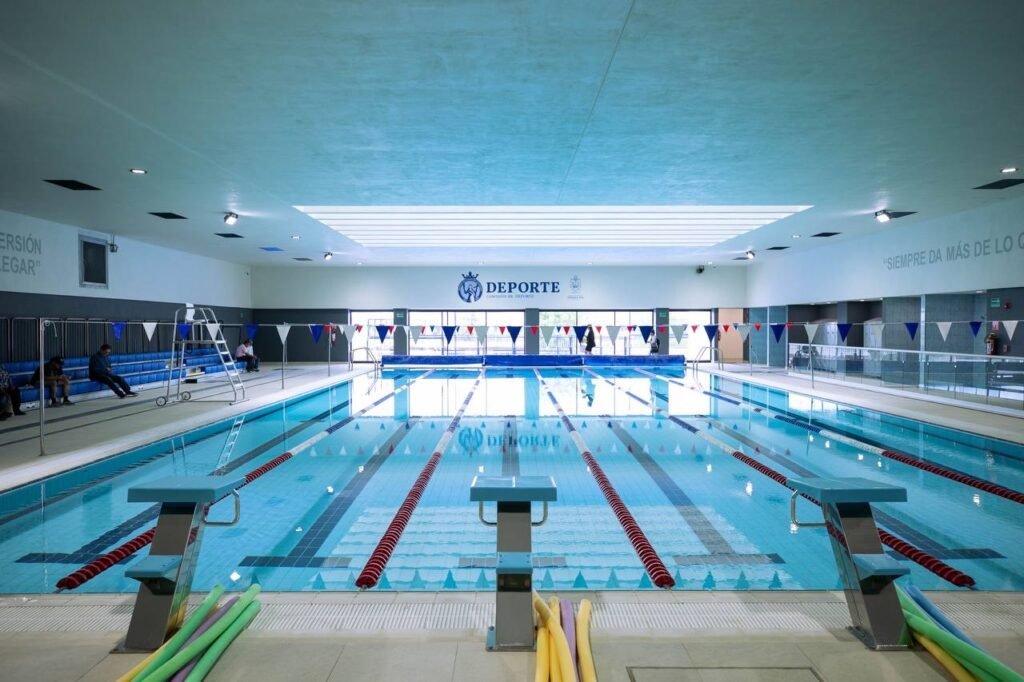 Este espacio cuenta con una alberca semiolímpica a seis carriles, vestidores, baños, gradas retráctiles, zona de equipos y oficinas administrativas; es el sexto en su tipo en la Entidad.