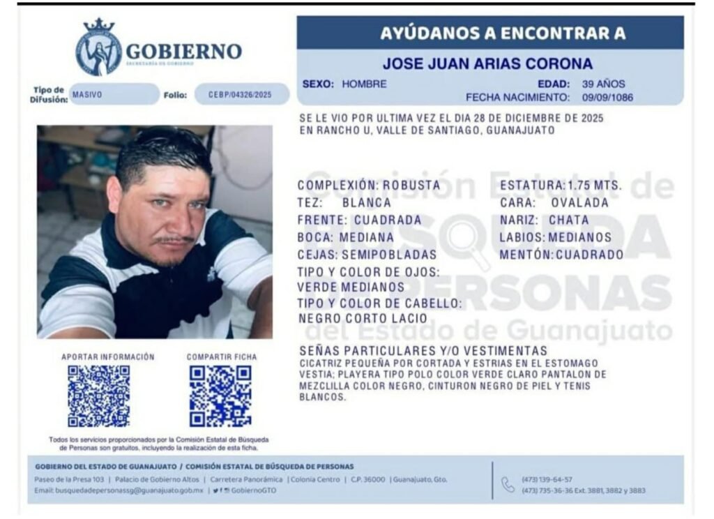 Tras meses de búsqueda de su hijo adolescente de 15 años, el padre buscador José Juan Arias Corona también desapareció en Valle de Santiago.
