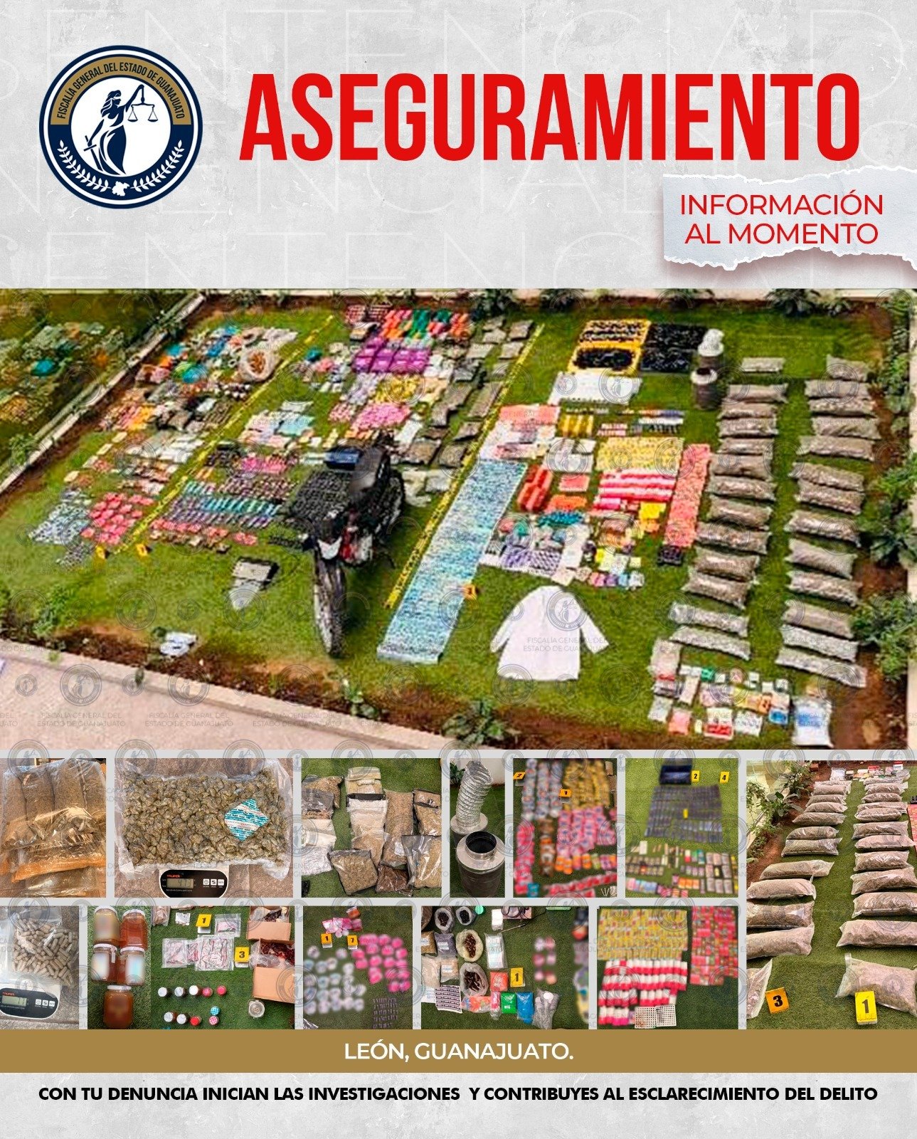 La diligencia fue ejecutada en las primeras horas del 19 de febrero de 2026, en un inmueble ubicado en la colonia Brisas del Carmen, en la ciudad de León. El mandamiento judicial tuvo por objeto la localización y aseguramiento de narcóticos como marihuana y metanfetamina conocida como cristal, así como cualquier evidencia asociada a su procesamiento y comercialización, incluyendo embalajes, envoltorios, etiquetas, básculas grameras, dinero u otros objetos producto de la venta de dichas sustancias.