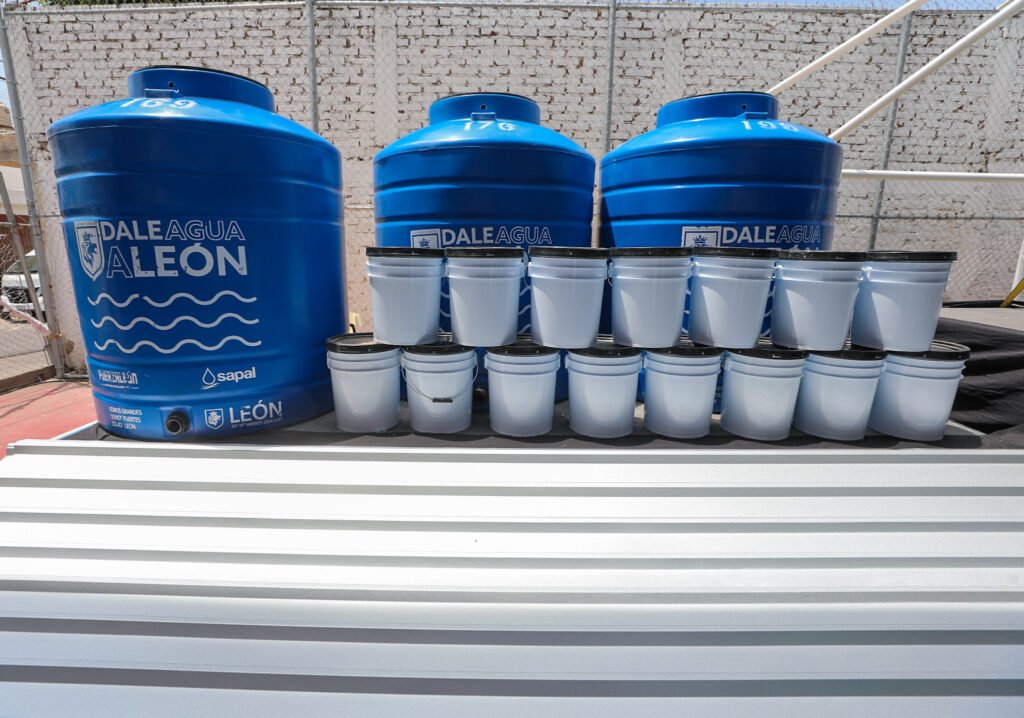Esta mañana, en el parque Valle de León se entregaron 330 apoyos, de los cuales 170 fueron tinacos, 50 láminas galvanizadas, 100 kits de impermeabilizantes, 3 calentadores solares, 3 cuartos adicionales y 3 techos dignos.