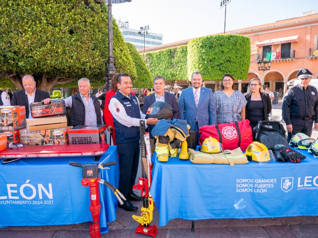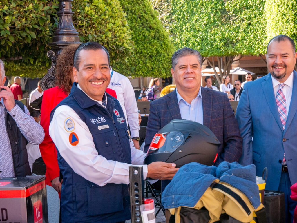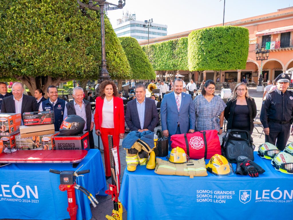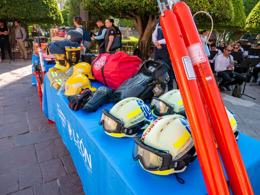 En el marco de la conmemoración, se entregaron constancias de capacitación y equipamiento por un monto de 1 millón 300 mil pesos, recursos que fortalecerán la capacidad de respuesta y protegerán con mayor eficacia la vida y el patrimonio de las y los leoneses.