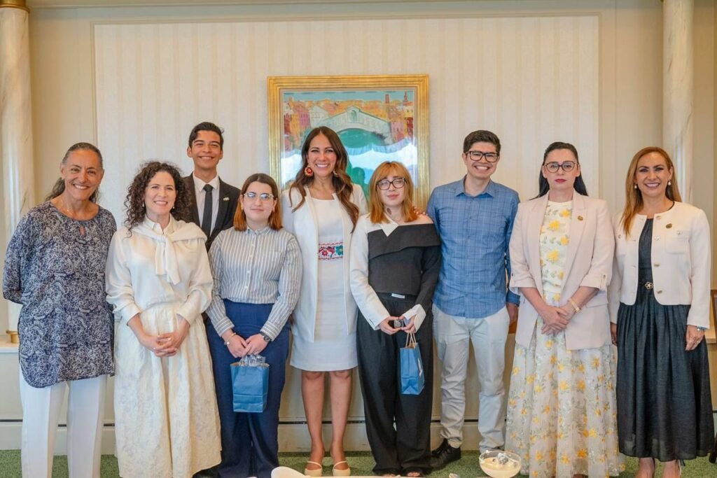 Posteriormente, Libia Dennise se reunió con estudiantes guanajuatenses que llevan a cabo sus estudios en Japón: Gerardo Cruz y Ximena Álvarez cursan su segundo año en la Academia Global de Hiroshima; Isaí Espinoza es estudiante del primer año en la Escuela de Posgrado de Ciencia y Tecnología Avanzada de la Universidad de Hiroshima y Claudia Núñez, estudiante del primer año en la Facultad de Ciencia de la Salud de la Universidad de Shudo de Hiroshima.