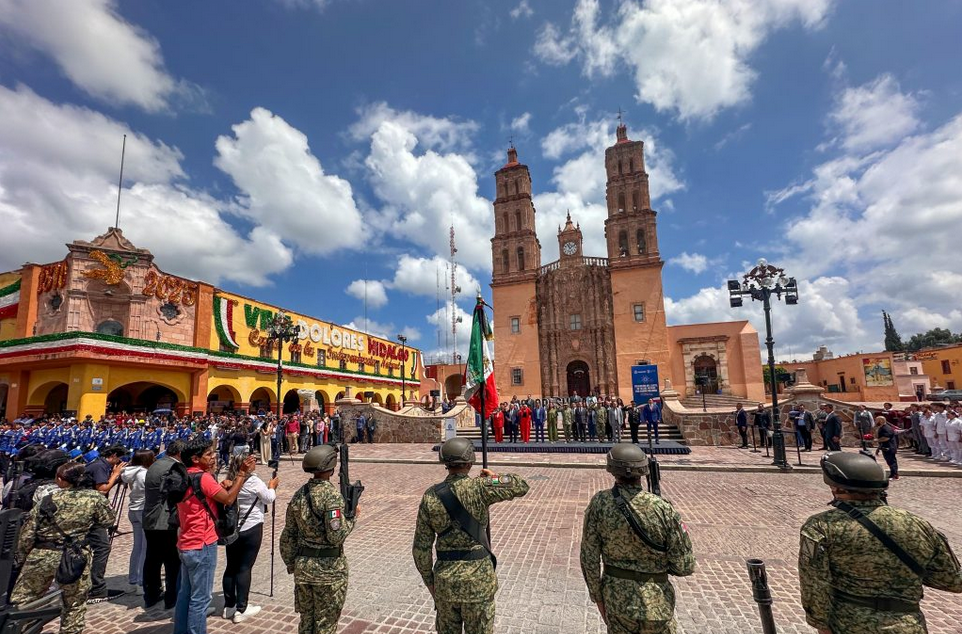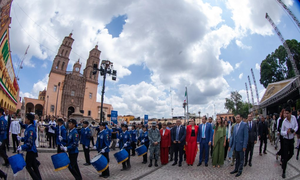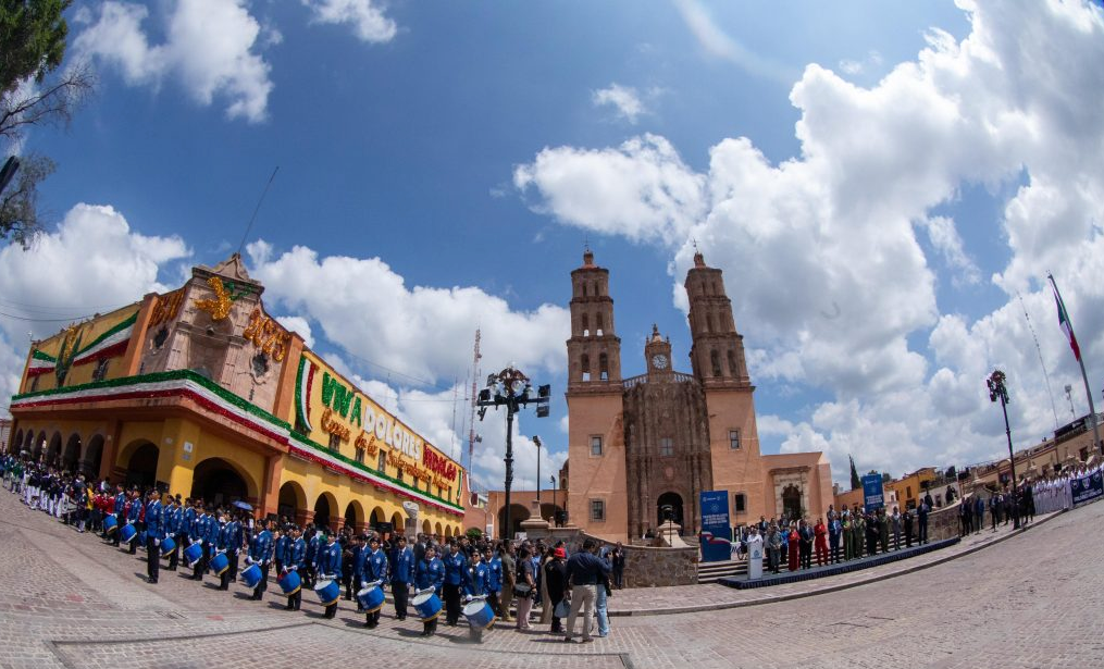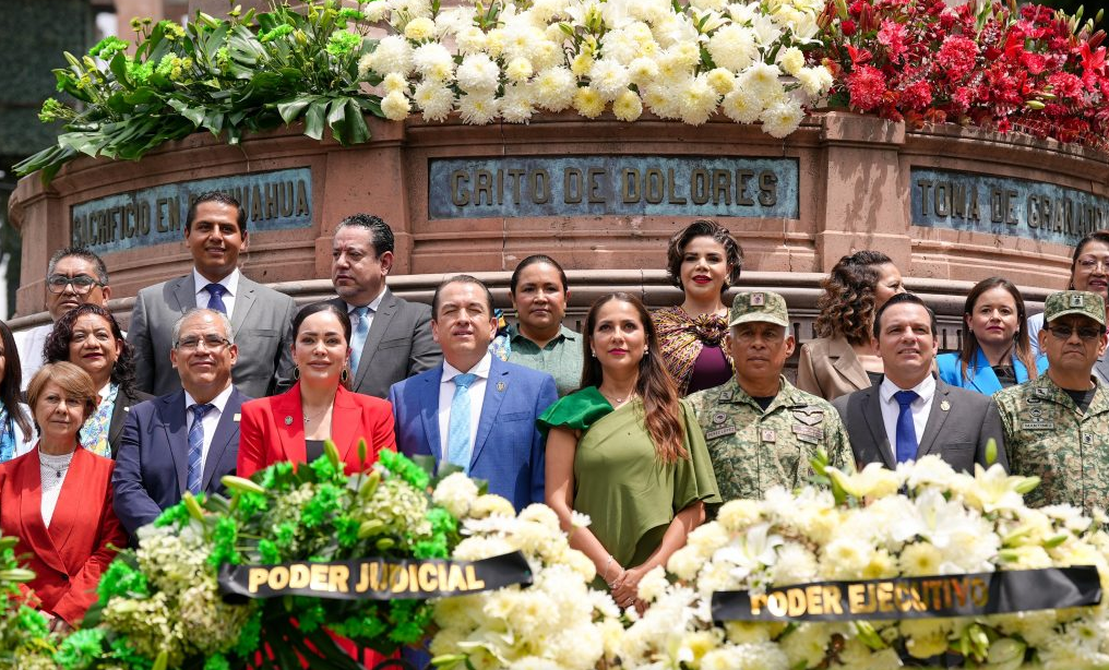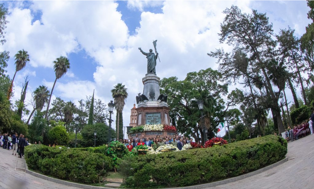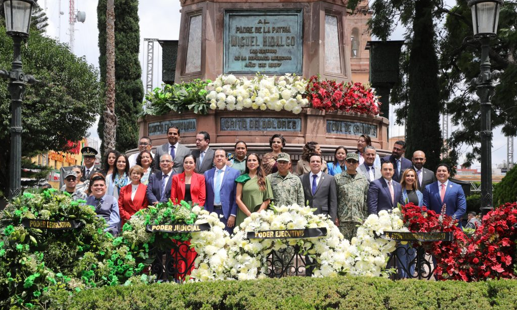 La ceremonia incluyó un momento solemne frente al Monumento a Hidalgo, donde la Gobernadora y las autoridades montaron una guardia de honor, rindiendo tributo al Padre de la Patria.