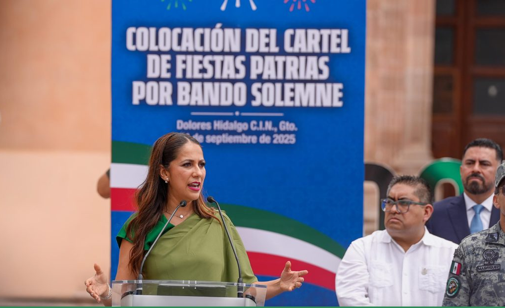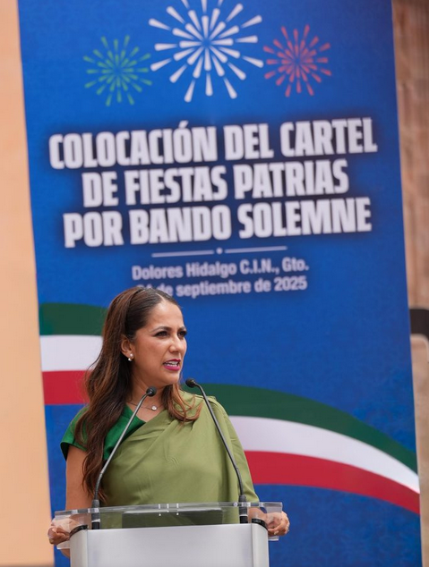 Al encabezar la ceremonia de colocación del Cartel de las Fiestas Patrias por Bando Solemne, la Gobernadora de la Gente, Libia Dennise García Muñoz Ledo, dijo que esta festividad será un motivo para renovar “el Fuego interno en cada persona, para seguir haciendo de Guanajuato, ese estado libre, de gente trabajadora, de valores, que dan Gloria a la Patria”.