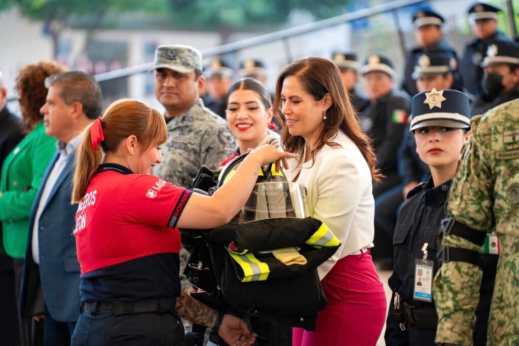 Asimismo, como parte del fortalecimiento integral a las corporaciones de seguridad y emergencia, también se entregaron 130 trajes estructurales a mujeres del Heroico Cuerpo de Bomberos, con una inversión de 11 millones 205 mil pesos.
