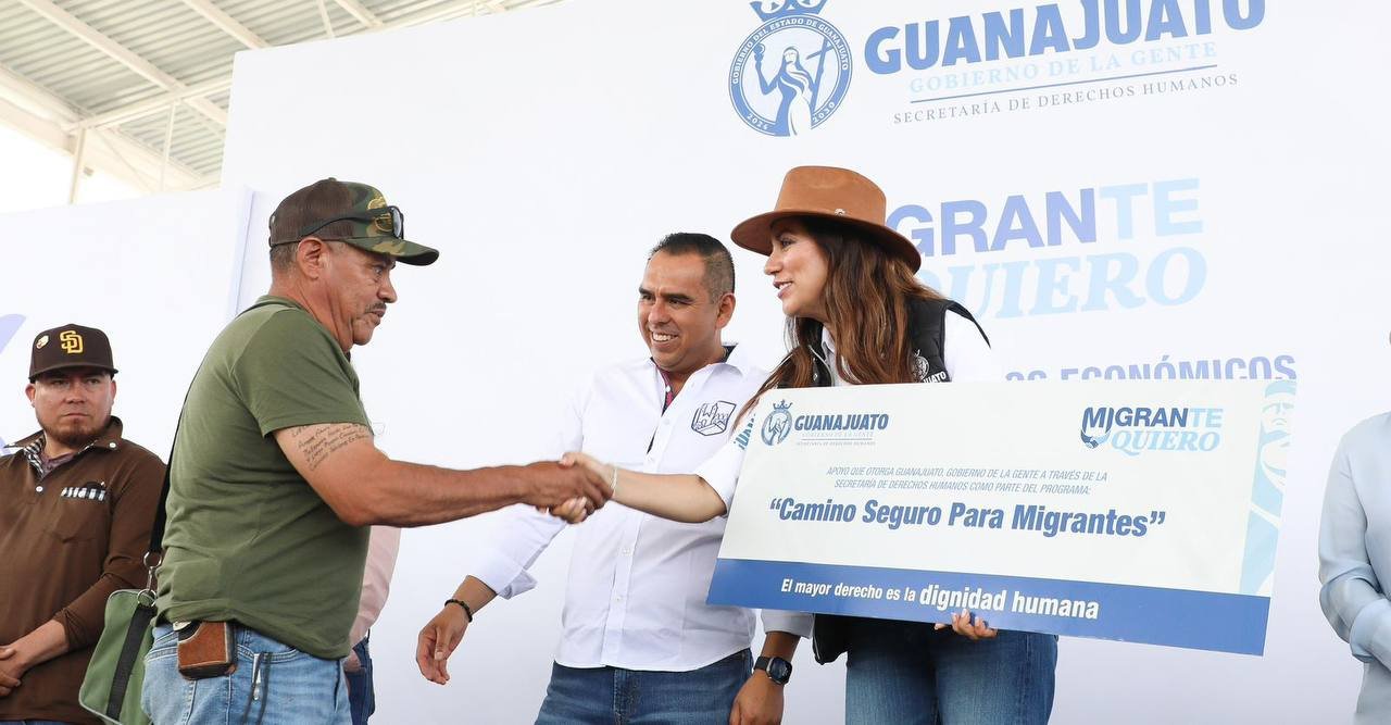 “Hay mucho que podemos hacer por nuestros migrantes Guanajuatenses. Todo nuestro cariño, nuestro respeto y sobretodo, nuestro trabajo comprometido para seguir haciendo equipo, porque los migrantes hacen grande a nuestra tierra, hacen grande a México y a Guanajuato”, dijo la Gobernadora y entregó 97 apoyos económicos a personas migrantes como parte del plan de retorno asistido, MigranTEQUIERO.
