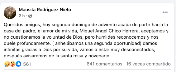Su esposa Mausita Rodríguez informó sobre el fallecimiento del político en un emotivo mensaje en sus redes sociales.redes sociales.