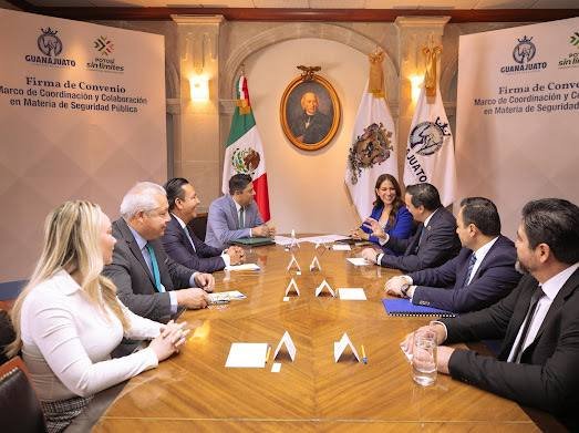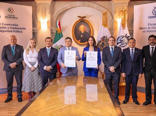 La Gobernadora Libia Dennise García Muñoz Ledo, y el Gobernador de San Luis Potosí, José Ricardo Gallardo Cardona, firmaron el convenio marco de coordinación y colaboración en materia de seguridad, en beneficio de la paz y armonía social de los habitantes de ambas entidades.