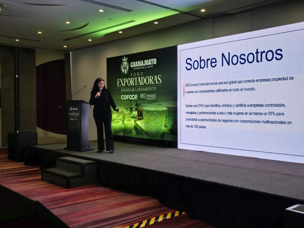 Por su parte la empresaria guanajuatense Yannet González, fundadora de ESPAZIO, ofreció un testimonio inspirador sobre su camino hacia la acreditación con WEConnect, de la mano de COFOCE, demostrando que el talento local está listo para competir en los mercados más exigentes del mundo.