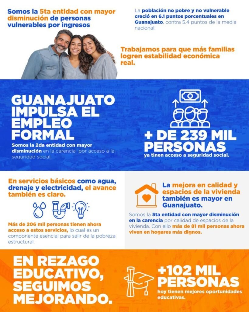 “Esto es resultado de una estrategia estatal de coordinación entre las distintas dependencias y de un trabajo transversal…La gobernadora Libia Dennise ha llegado a liderar con mucha claridad, dándole perspectiva y visión de lo que es la política social con una técnica distinta y los resultados hoy en Guanajuato son medibles. MORENA quiere andar presumiendo lo que no hizo”, agregó.