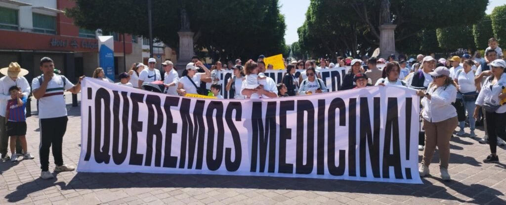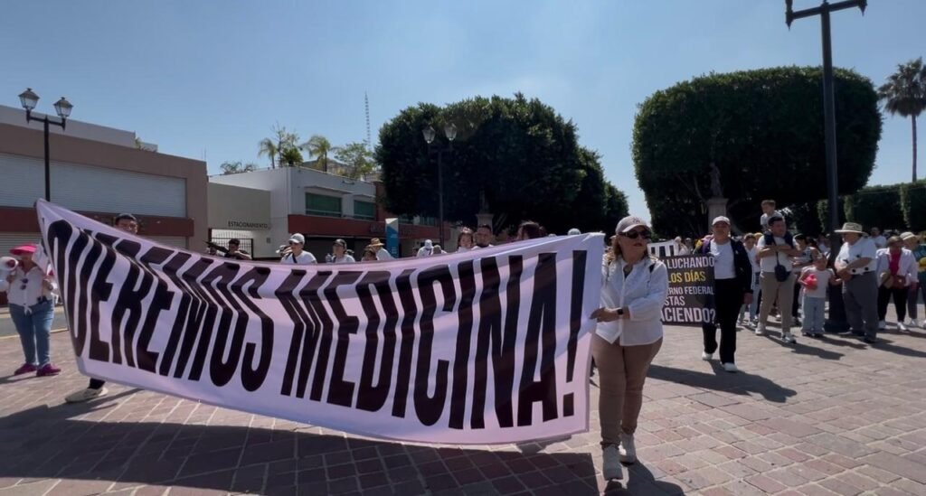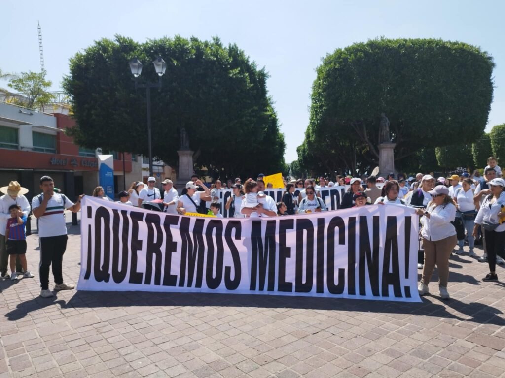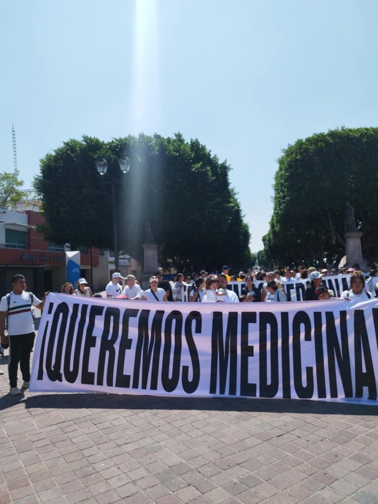 El contingente de manifestantes se congregaron a las 10 de la mañana en el Arco de la Calzada donde expusieron mensajes solicitando medicamentos, recorrieron la calle Madero y llegaron a la plaza principal mientras gritaban consignas como ‘IMSS BIENESTAR DESASTRE NACIONAL’.