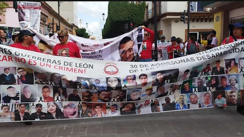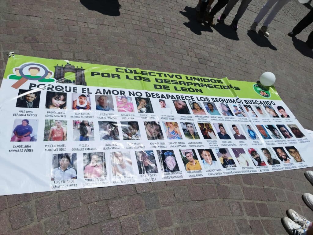 Colectivos de búsqueda de personas desaparecidas marcharon del Arco de la Calzada a la plaza principal de la ciudad de León exigiendo el regreso de sus seres queridos, esto en el marco del Día Internacional de Víctimas de Desaparición Forzada.