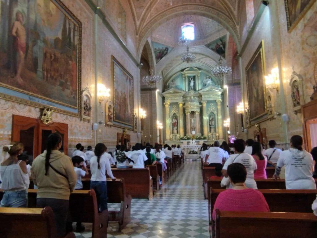Al medio día colectivos se concentraron en la parroquia del centro histórico para oficiar una misa por sus desaparecidos, donde el sacerdote les dio palabras de consuelo y aliento ante su incansable búsqueda.