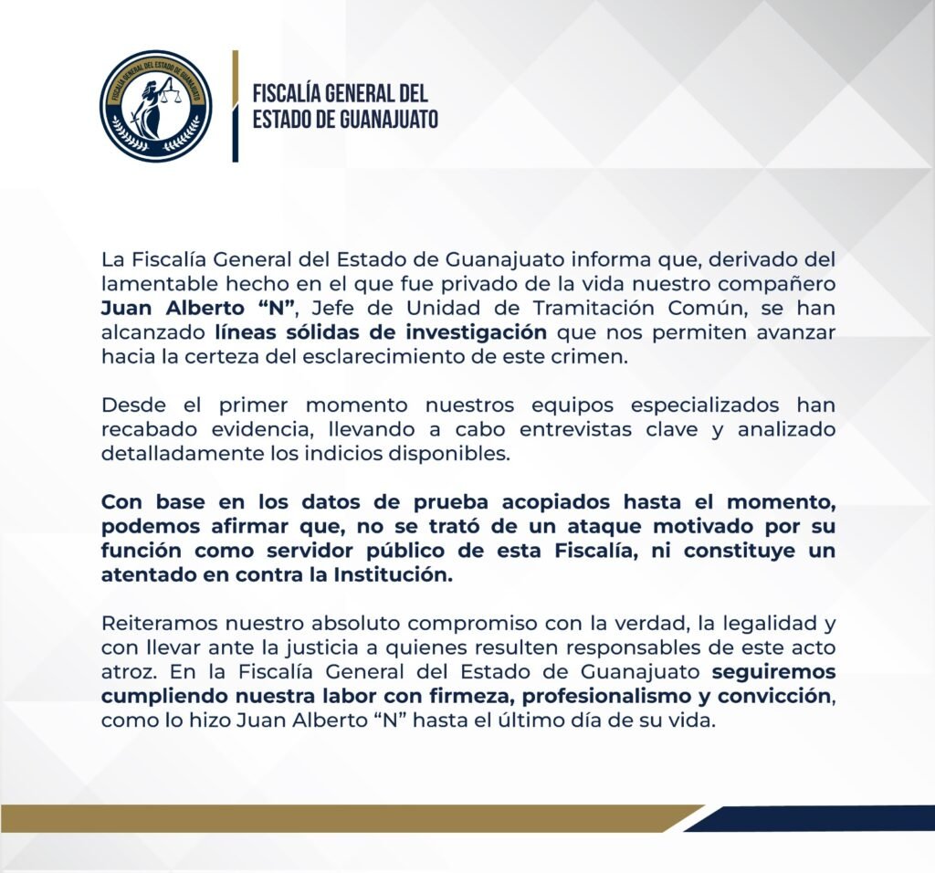 A través de un comunicado, la Fiscalía informó que el asesinato de uno de sus Mandos, Juan Antonio Camarillo Zavala no fue por su función como servidor público.