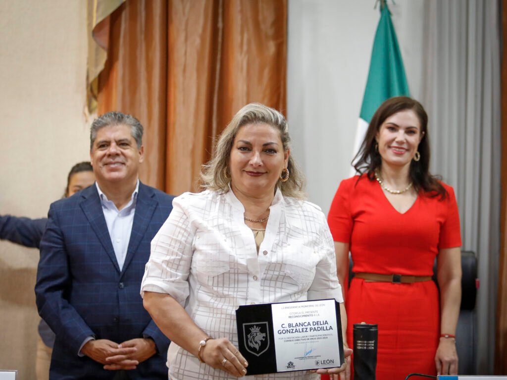 En este sentido, la presidenta municipal les entregó un reconocimiento por preocuparse en que las y los leoneses tengan el derecho a una vivienda digna.