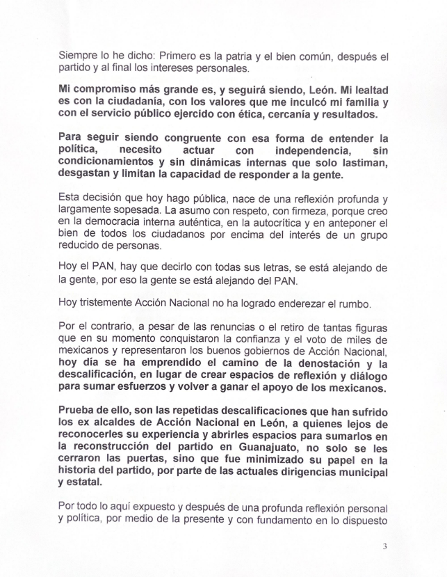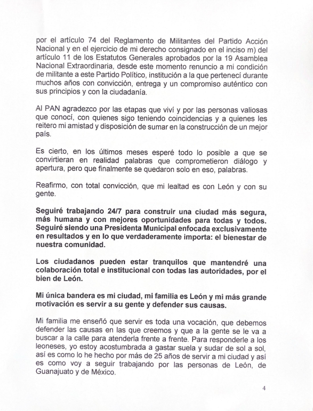 RENUNCIA DE LA ALCALDESA DE LEÓN ALEJANDRA GUTIÉRREZ AL PAN