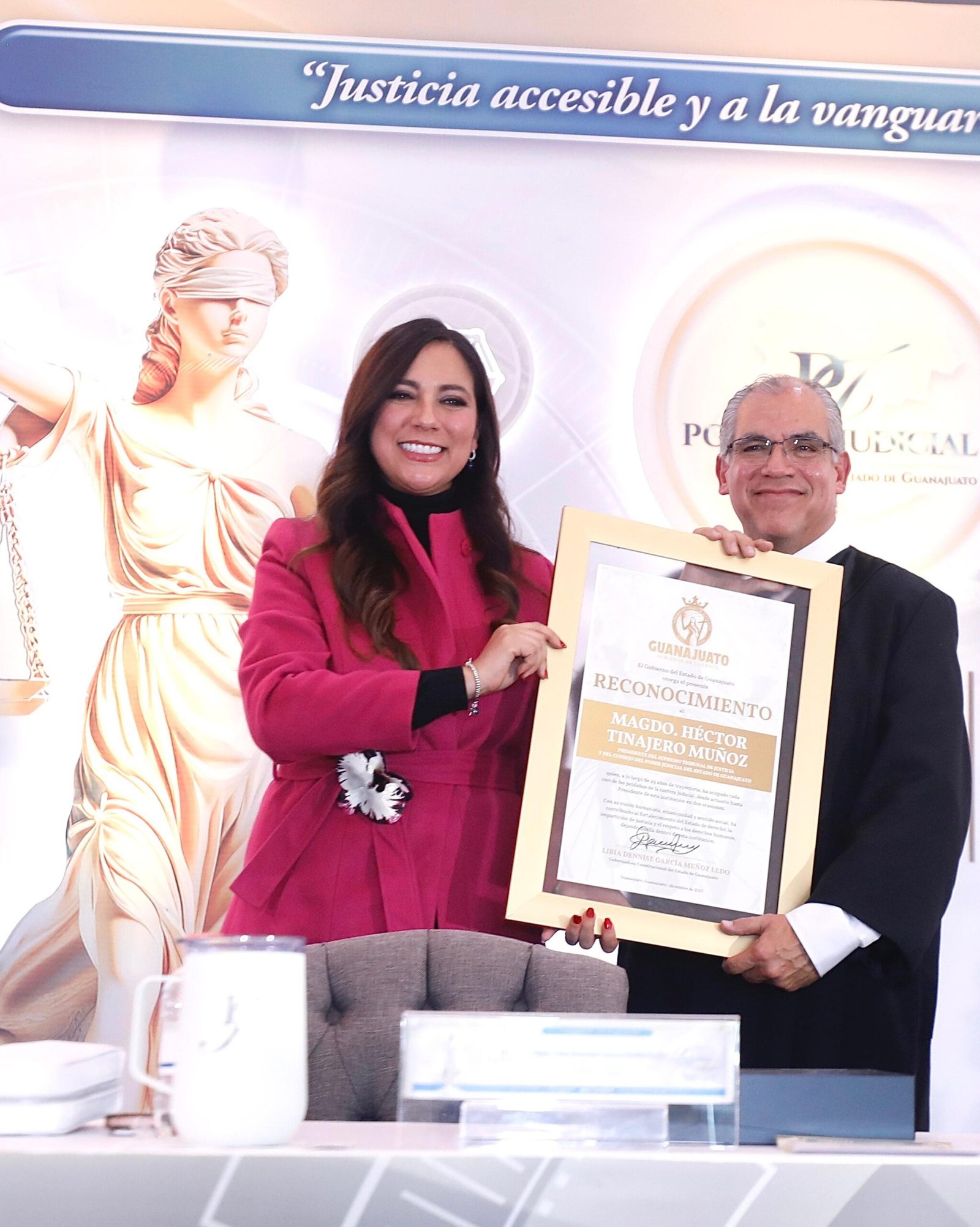‘En Guanajuato, en nuestro estado, la justicia es y seguirá siendo la columna vertebral de nuestra vida democrática, la justicia es el corazón que mantiene vivo el estado de derecho y con ella también nuestra convivencia pacífica y si algo caracteriza a Guanajuato, si algo distingue a nuestro estado, es su profunda convicción por la legalidad’ dijo la mandataria.