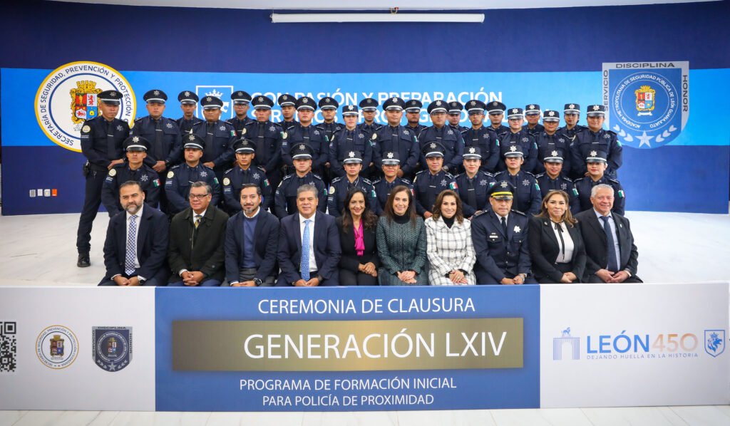 La alcaldesa de León Ale Gutiérrez encabezó la ceremonia de graduación de la generación 64 del Programa de Formación Inicial para Policía de Proximidad.