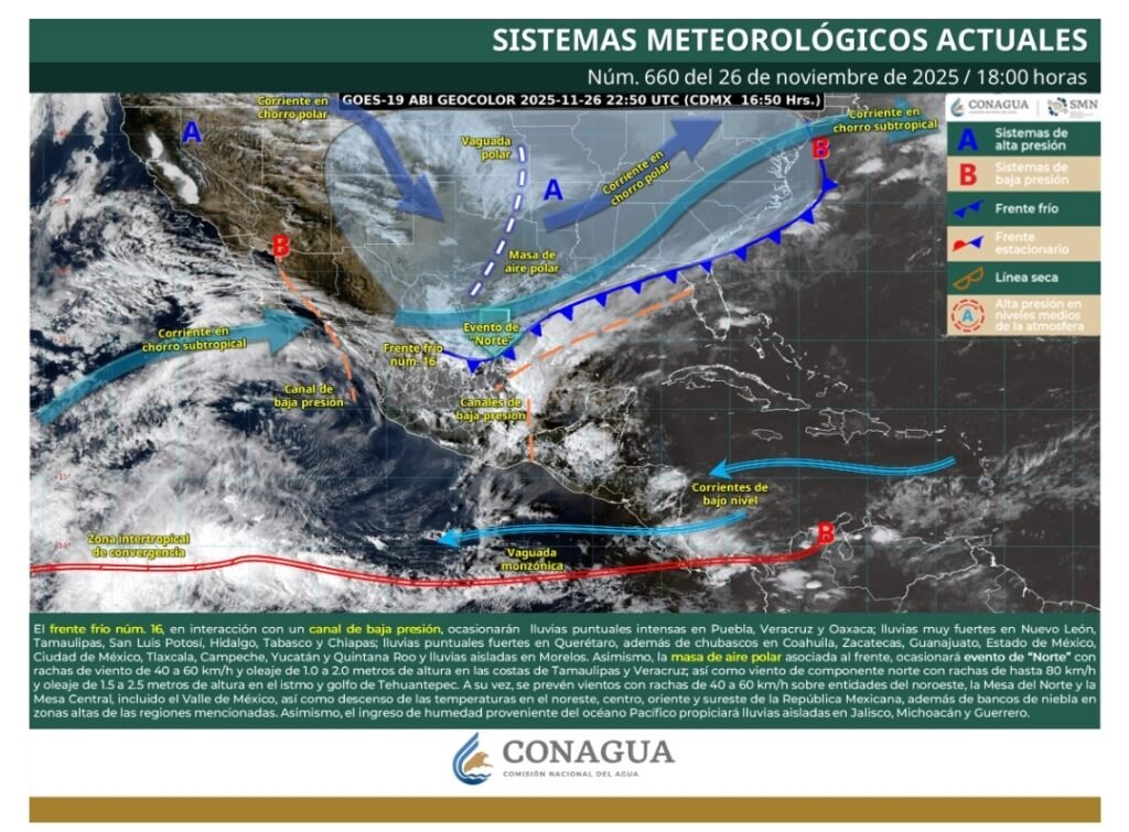 De acuerdo al sistema meteorológico nacional, éste jueves 27 de noviembre se pronostican en Guanajuato chubascos de 5 a 25 mm, al igual que en el Estado de México, Ciudad de México, Tlaxcala, Campeche, Yucatán y Quintana Roo.