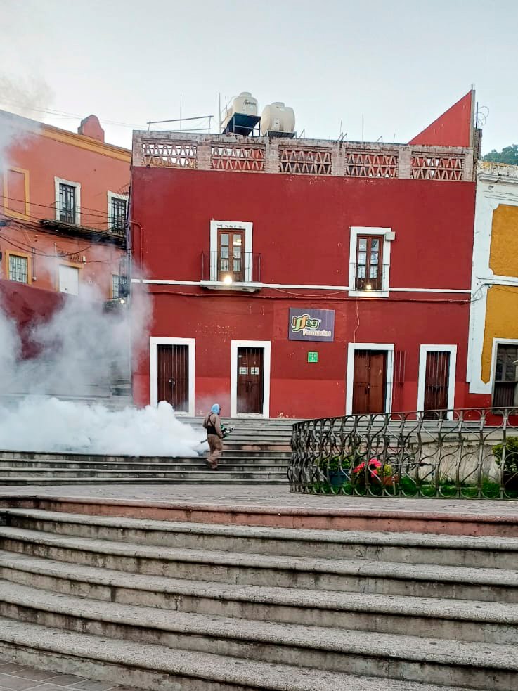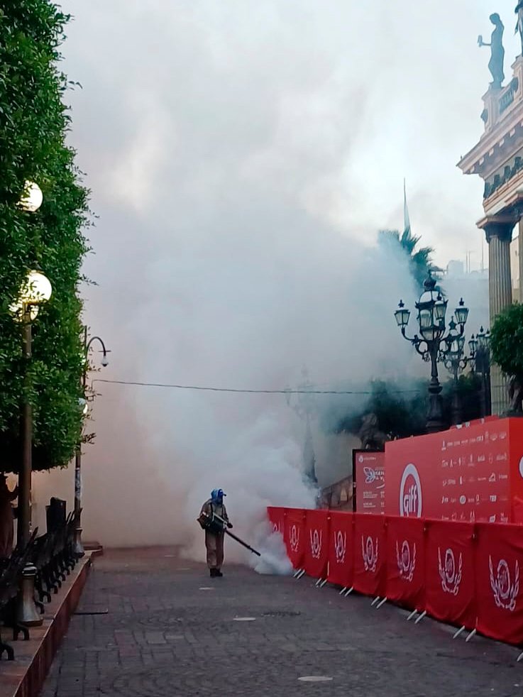 La Secretaría de Salud del estado con intervención de la Jurisdicción Sanitaria I reforzó las actividades de termonebulización contra el dengue en la capital del estado, con motivo del Festival Internacional de Cine Guanajuato (GIFF) y el Día de la Cueva de San Ignacio de Loyola.